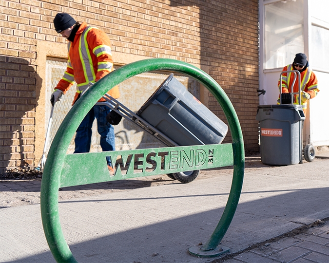 The West End BIZ regularly pressure washes sidewalks in high-traffic business areas to help keep the neighbourhood clean and welcoming. This service removes built-up dirt, stains and debris that naturally accumulate over time.